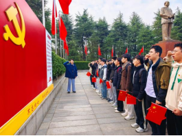 上午10时,全体党员来到毛泽东铜像广场,怀着无比崇敬的心情向铜像敬献花篮,集体三鞠躬并绕行一周,表达对伟人的深切缅怀和崇高敬意。随后,全体党员面向中国共产党党旗,重温入党誓词。新时代机电学子时刻牢记共产党员的责任和使命,始终保持对党的忠诚和信仰。