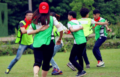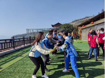 比赛规则:每队形成1路纵队,除最后一人全部带上眼罩,在不能说话的情况下,从起点出发,前往宝藏区,只有第一个人可以拿取宝藏,获取宝藏后,依次向后传递,给最后一名队友,并放入屁股后面的宝藏桶中。在规定的时间内完成比赛,最终按照所获宝藏价值排名。红色宝藏5分、黄色宝藏2分,白色宝藏1分。(比赛时间10分钟)