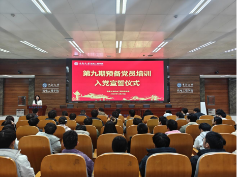 12月24日下午,全讯600cc大白菜分党校第九期预备党员培训班暨入党宣誓仪式于中铝科技大楼B214报告厅顺利举行。学院党委副书记李玲芝、组织干事戴泽宇以及74名预备党员参加培训班。仪式由班导师刘璇主持。 本次仪式在庄严的《国际歌》旋律中正式拉开帷幕。学院党委组织干事戴泽宇宣读预备党员名单。本科生三支部尹快同志领全体预备党员庄严宣誓:“我志愿加入中国共产党,拥护党的纲领,遵守党的章程……”铮铮誓言响彻会场...
