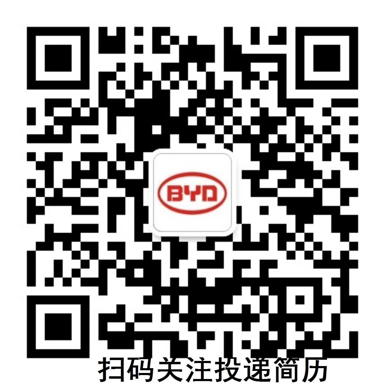 移动端:扫码关注【比亚迪招聘】公众号 选择菜单校园招聘—简历投递