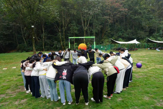 随后,团队协作游戏环节正式开启。“记名字”“不倒森林”“曲棍球”等一系列精心设计的游戏任务,考验着各小队的沟通协调能力、应急反应能力与集体协作精神。指导老师们也加入互动,与同学们一同参与游戏、加油鼓劲,现场形成了师生同心、携手共进的良好氛围。在一次次的协作与比拼中,队员们相互信任、彼此支持,不仅攻克了一个又一个难题,更深刻体会到了 “独木不成林,众志能成城” 的团队精神。