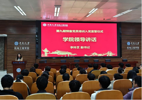 1224日下午,全讯600cc大白菜分党校第九期预备党员培训班暨入党宣誓仪式于中铝科技大楼B214报告厅顺利举行。学院党委副书记李玲芝、组织干事戴泽宇以及74预备党员参加培训班。仪式由班导师刘璇主持。